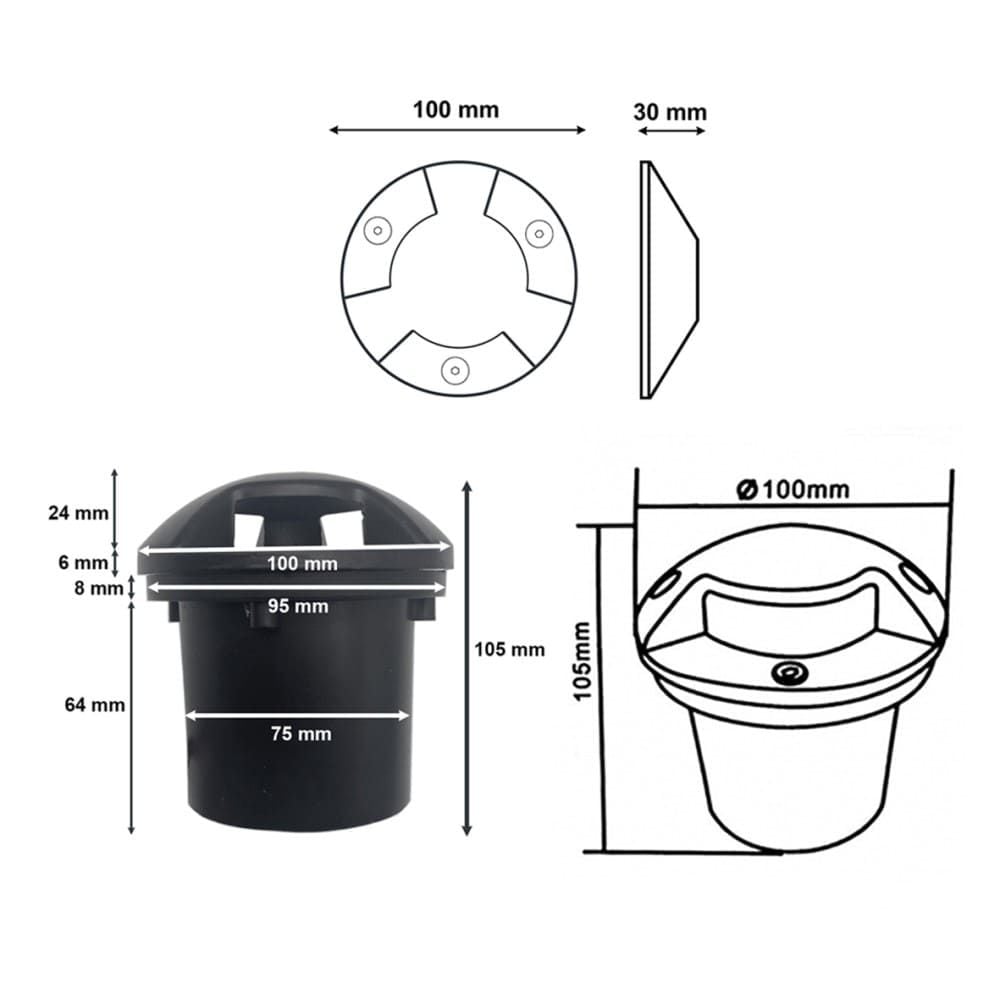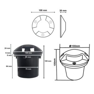– Đèn LED âm đất 3 hướng sáng 3W chống nước ,chuẩn IP65,chiếu sáng ngoài trời được gắn âm đất, âm đường , âm quảng trường ,âm tường, âm lối đi. Thân đèn bằng nhôm đúc, bề mặt kính cường lực 5mm chịu tải trọng lớn. Vành đèn bằng inox sang trọng.