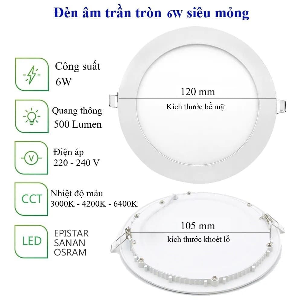 - Kích thước mặt: Φ120mm (Độ phủ rộng, che lấp hoàn hảo vết khoét cũ). Thiết kế siêu mỏng, tản nhiệt nhôm cao cấp, bảo hành 2 năm.