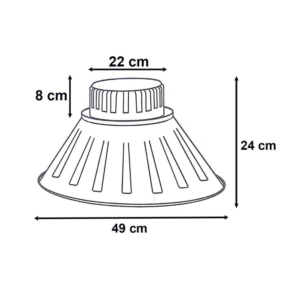 Chóa đèn nhà xưởng hình chuông với góc khuếch tán 120°, dễ dàng lắp đặt trên trần nhà.